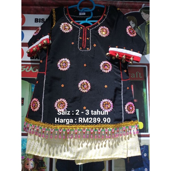 Kebaya setengah tiang is a traditional clothing of negeri sembilan. Di kalimantan barat, masyarakat iban lebih memilih memakai baju dari sanggar tari mereka. Bagi kaum wanita masyarakat bidayuh, pakaian lengkap adalah termasuk baju berlengan pendek atau separuh lengan dan sepasang kain sarung berwarna hitam paras lutut yang dihiasi dengan manik manik halus pelbagai warna disulami dengan kombinasi warna utama iaitu putih, kuning … Perkara ini diperkukuhkan lagi dengan ngajat sebagai salah satu daripada senarai warisan negara 2009. Selain itu, ada juga cerita yang menyatakan bahawa baju kurung telah wujud sejak zaman kesultanan melayu melaka lagi.